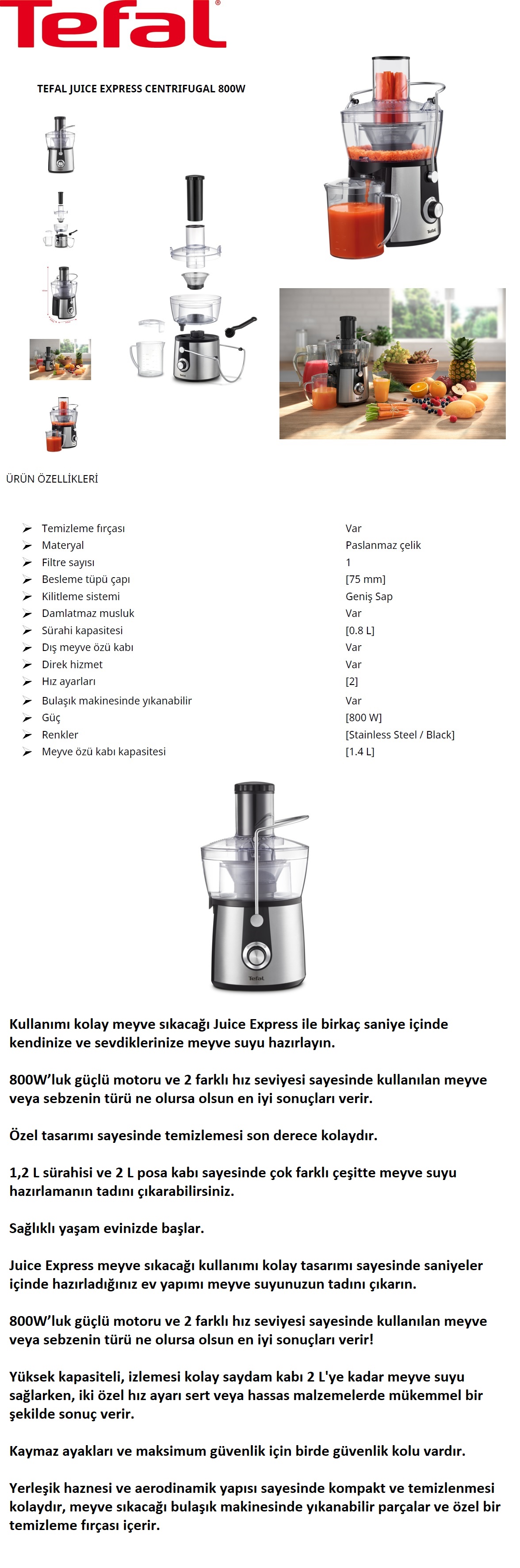 Tefal Juice Express 800 Watt İnox Katı Meyve Sıkacağı ZE550D